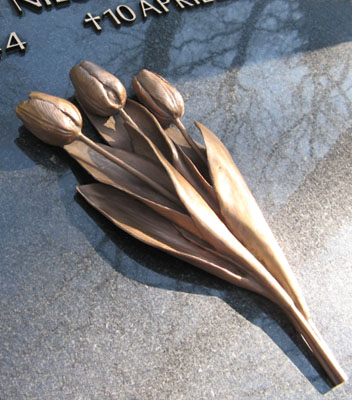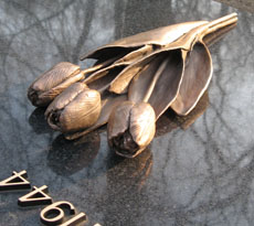 De tulpen werden ontworpen in zwarte was en volgens het cire perdue proces gegoten in brons en gepatineerd.